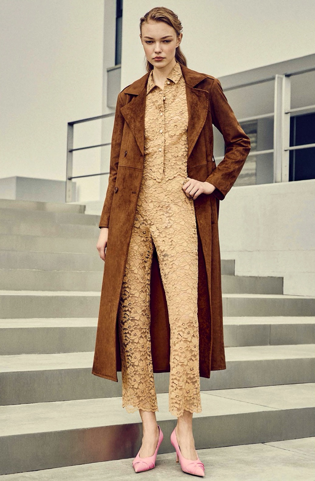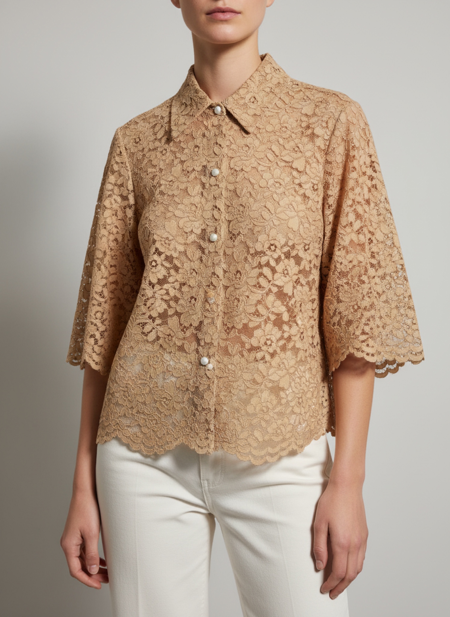 Camisa de encaje camel